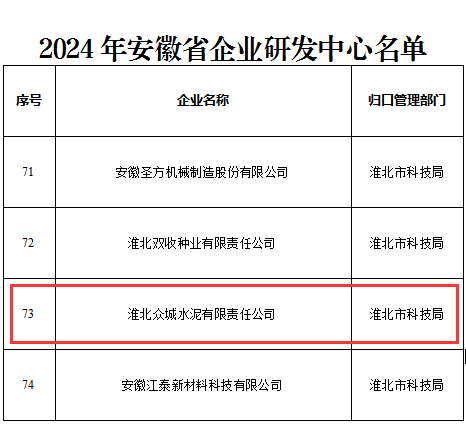 11月4日,安徽省科技廳發布《關于確認2024年安徽省企業研發中心名單的通知》,淮海實業集團所屬淮北眾城水泥有限責任公司被認定為安徽省企業研發中心。 此次認定,依據《安徽省企業研發中心建設工作指引(試行)》和2024年安徽省企業研發中心建設工作要求,由省科學技術廳負責實施,采取“組織申報、形式審查、現場核查”等方式評審,具有高度權威性、真實性和代表性,是對企業“經營規模、產業價值、技術能力”等創新要素的一...