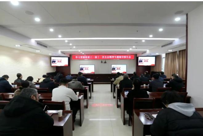 淮海實業集團組織觀看學習貫徹省委十一屆十一次全會精神專題輔導報告會