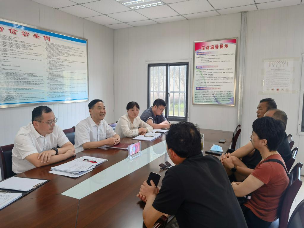 8月12日,淮海實業(yè)集團黨委委員、副總經(jīng)理王雪峰在集團公司信訪接待室與信訪群眾約訪。(秦熠諾
