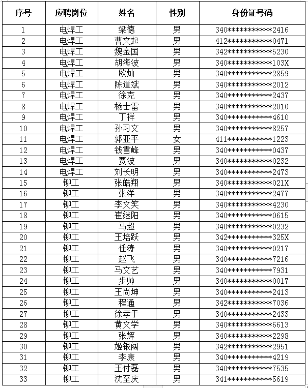 安徽省礦業機電裝備有限責任公司公開招聘報名資格初審已結束,現將通過報名資格初審的人員名單及面試工作公告如下: