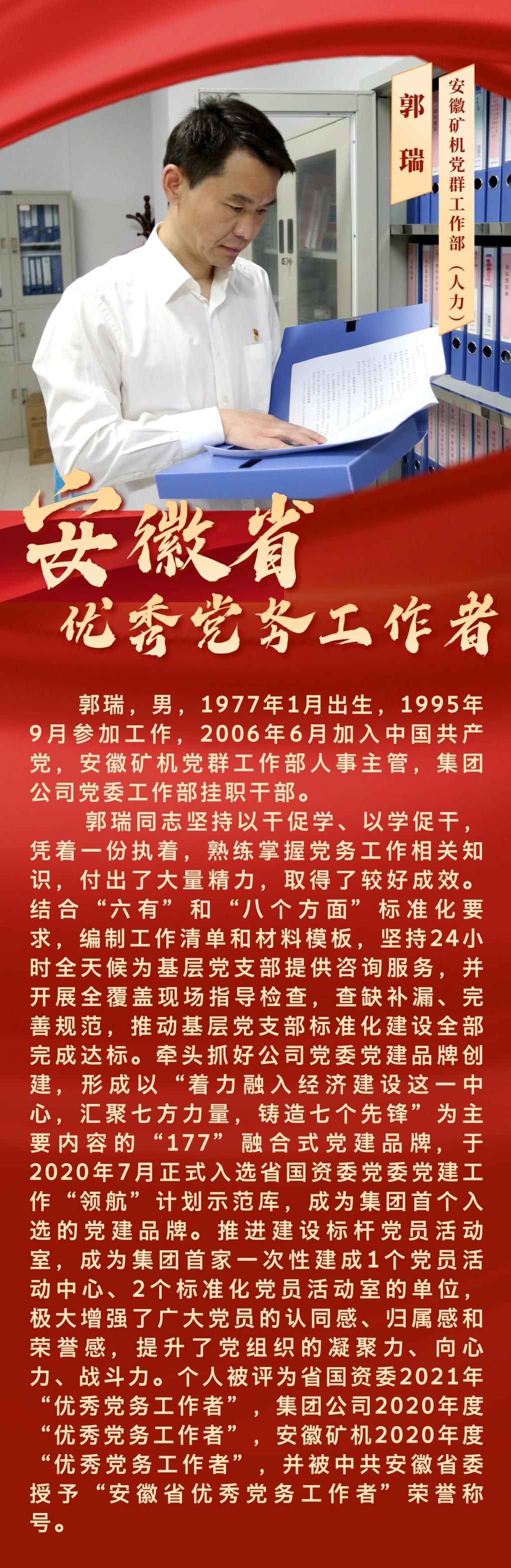 【榜樣引領】集團公司優秀個人先進事跡之安徽礦機郭瑞:勇爭黨務先鋒
