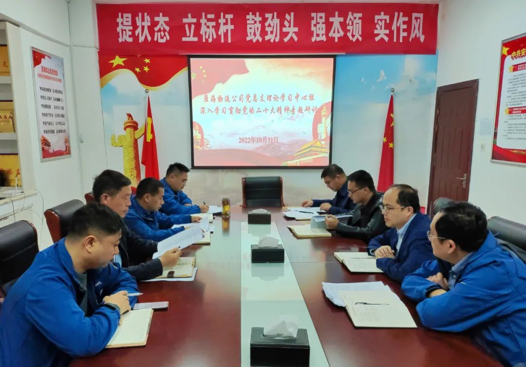 近日,淮海物流公司黨總支組織召開理論學習中心組學習研討會。該公司領導班子成員,各部門廠點主要負責人及各黨支部支委參加了會議。