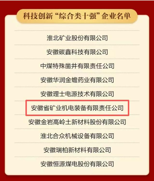 蟬聯!安徽礦機再獲淮北市科技創新企業“綜合類十強”