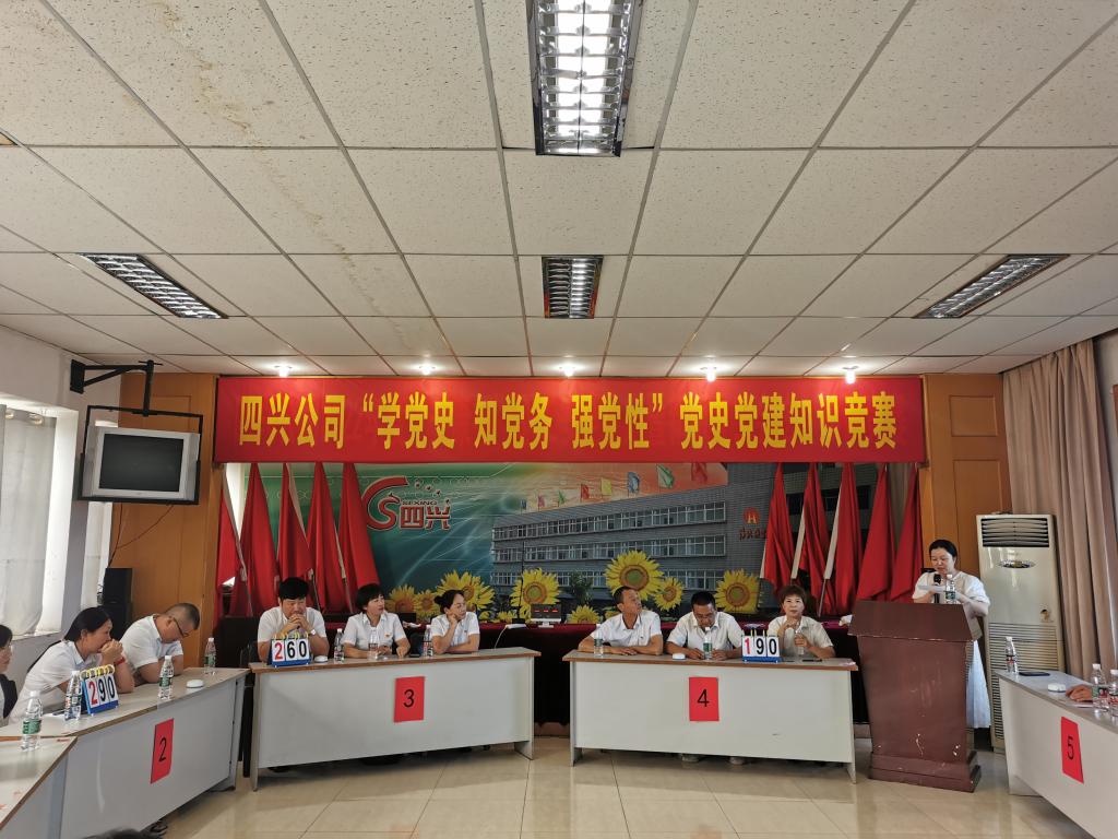 近日,四興公司黨總支舉辦了 “學黨史 知黨務 強黨性”知識競賽活動,來自6支代表隊48人參加了競賽答題。