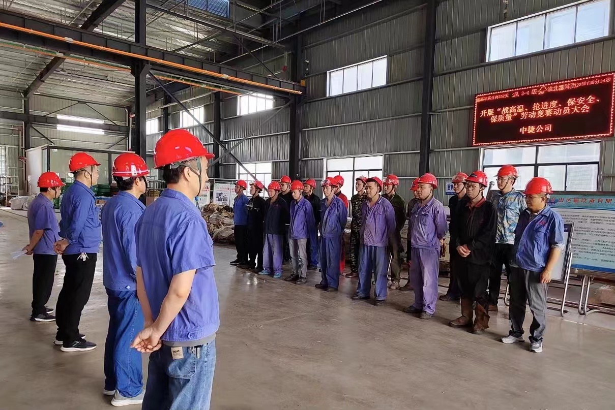 “大家有沒有信心圓滿達成目標?”“有!”整齊響亮、鏗鏘有力的應答聲,掀起了為期三個月的“一站一搶兩保” 即戰高溫、搶進度、保安全、保質量主題勞動競賽的序幕,激發了車間全體干部職工完成任務的決心和信心。中捷公司上下緊緊抓住全年目標任務這個核心、奮發有為,抓進度,搶工期,強力推進項目建設。