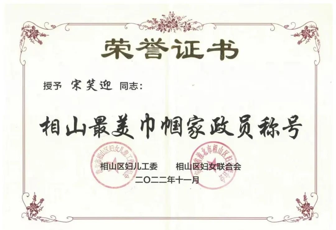 11月23日,相王現代愛暉康養公司宋笑迎在“相山最美巾幗奮斗者”推選活動中被評為“相山最美巾幗家政員”。據了解,此次活動是相山區婦聯、相山區婦兒工委聯合舉辦,旨在弘揚新時代“四新”領域女性勇挑重擔、不畏艱難、無私奉獻的奮斗精神,用榜樣的力量激勵更多的女性追求卓越、奮斗奮進。宋笑迎憑借個人優秀家政服務經驗與養老工作能力,在此次評選活動中嶄露頭角,綜合素質和工作能力獲得了一致肯定,進一步展現了相王現代養老服務產業的實力,提升了企業外部形象,為深化拓展養老服務市場打下良好基礎。