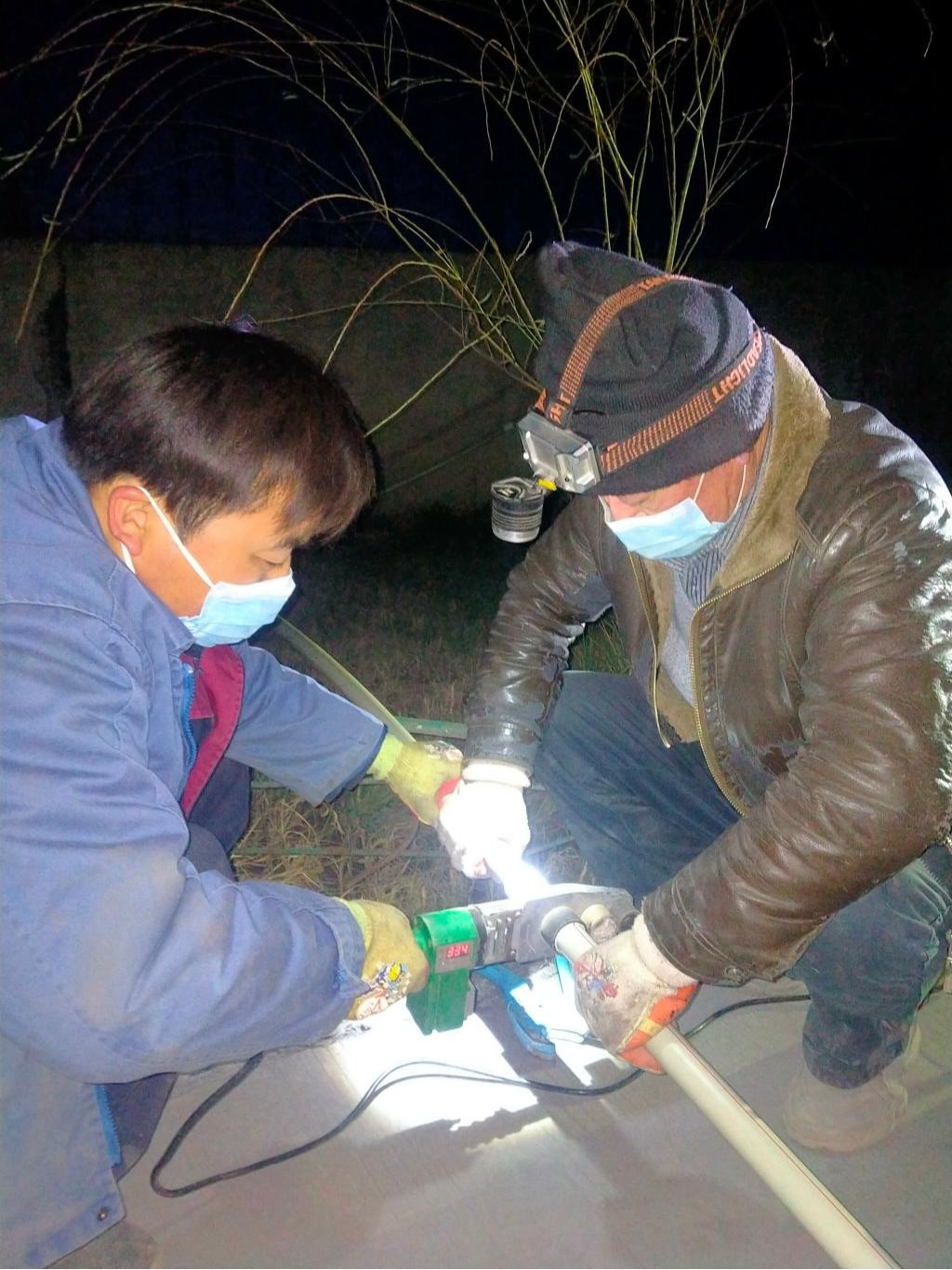 經(jīng)過廠領(lǐng)導(dǎo)班子與技術(shù)人員認(rèn)真研究,商議定于原料車間的螺桿風(fēng)機(jī)串聯(lián)使用,安裝一條PVC輸氣管路。黨員突擊隊(duì)三位同志立即組織開展工作,準(zhǔn)備材料、制作架空固定件、熱熔焊接PVC管等。經(jīng)過4個(gè)多小時(shí)的奮戰(zhàn),終于制作安裝完成一條近百米的輸氣架空管路,磚廠又恢復(fù)了機(jī)器的轟鳴聲。