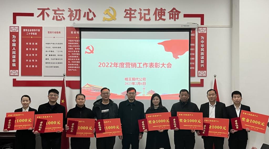 2月6日,相王現代公司召開2022年度營銷表彰會暨2023年營銷動員大會,總結去年經營工作,安排部署今年營銷任務,進一步動員干部職工凝心聚力、搶抓機遇、干事創業,舞好銷售龍頭,確保全面完成今年確定的經營目標任務,推動公司持續健康發展。