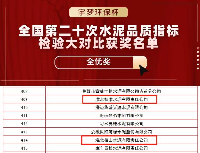 近日,從“宇夢環保杯”第二十次全國水泥品質指標檢驗大對比活動中傳來喜訊,相山水泥一舉斬獲兩項“全優獎”。這是該公司繼上次榮獲安徽省特等獎之后,在質量管理領域的又一次自我超越,標志著企業在品質控制道路上邁上了新臺階。