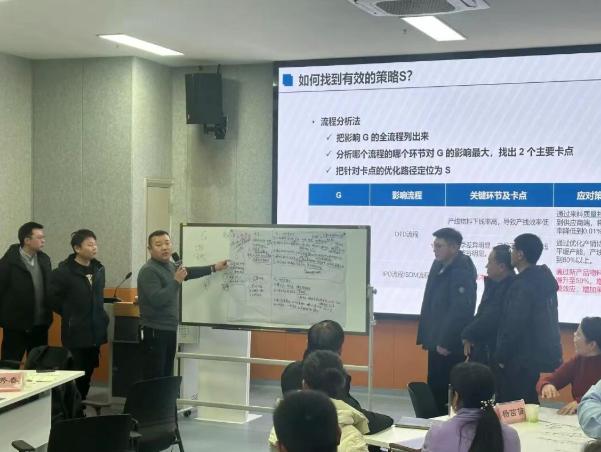 培訓圍繞“聚焦實體經濟、強化科技創新、深化體制機制”三個主題展開結構化研討。學員們結合企業實際,復盤工作成果,剖析瓶頸問題,共謀突破方向?;贕SA戰略目標管理方法論,針對安徽礦機十五五“七個成本管控”進行實操演練,大家分組研討、輪流發言,提出諸多切實可行建議,展現了務實高效、協同共進的良好風貌。
