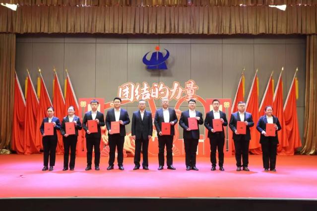 榜樣引領方向,先進凝聚力量。年會特別設置優秀代表分享環節,來自戰略發展部、綜合辦公室等五位代表上臺講述心聲,樸實言語中透出責任擔當,為全體同仁樹立了學習標桿。現場還對2024年度機關管技人員綜合考核“優秀”等次人員進行了表彰,羅偉為獲獎代表頒發榮譽證書并合影留念,激勵先進、鼓舞士氣。