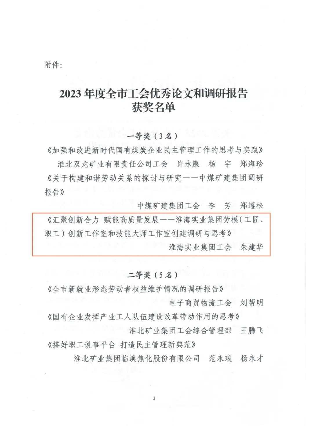 3月12日,筆者了解到,淮海實業集團工會榮獲淮北市2023年度“五型工會”勞動競賽一等獎、全市工會宣傳工作勞動競賽三等獎。《匯聚創新合力賦能高質量發展--淮海實業集團勞模(工匠、職工)創新工作室和技能大師工作室創建調研與思考》《凝聚“她”力量 巾幗譜華章--淮海實業集團女職工工作情況調研報告》兩篇調研報告分獲全市工會優秀論文和調研報告一、二等獎。