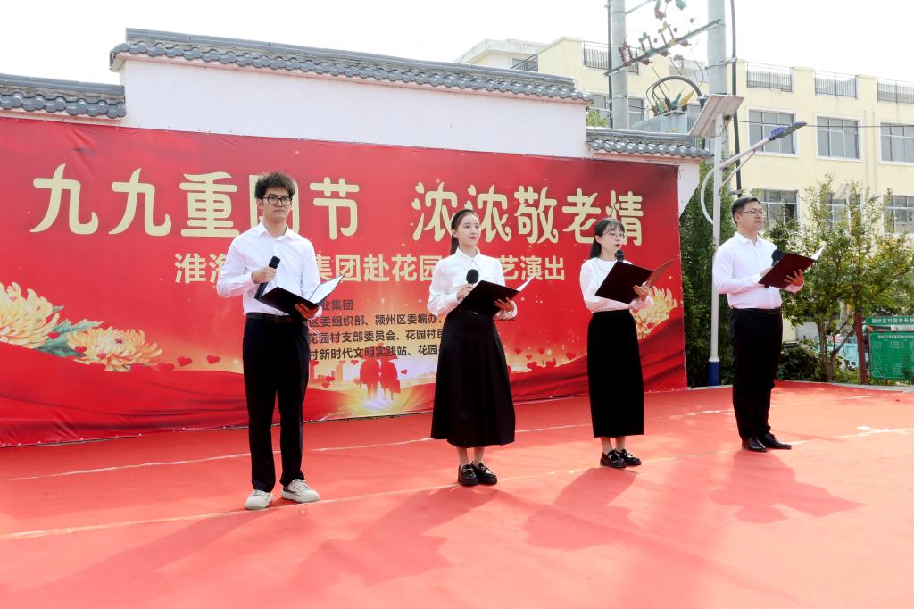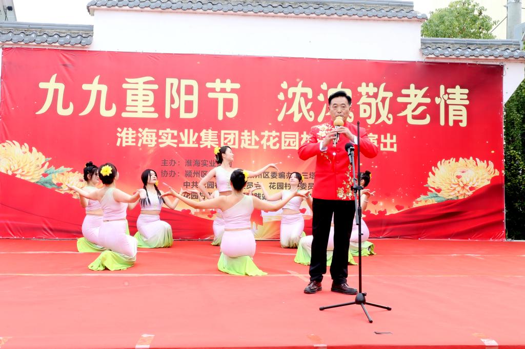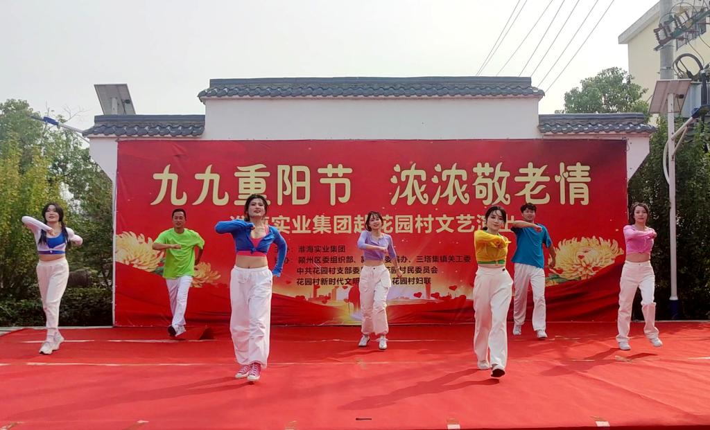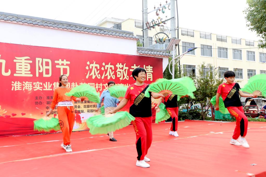 為弘揚中華民族敬老、愛老、助老傳統美德,豐富老年朋友文化娛樂生活,共同歡度“九·九”重陽節,10月11日,淮海實業集團赴阜陽市潁州區三塔集鎮花園村,開展“九九重陽節 濃濃敬老情”送節目下鄉文藝演出,為村民們送去豐盛文化大餐。
