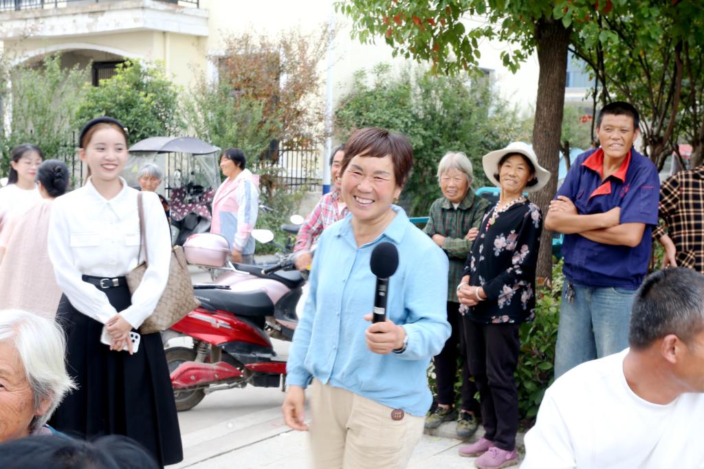 文化志愿者精心準備《上春山》《歲歲重陽今又重陽》《我和我的祖國》《竹樓情歌》《誰說女子不如男》等13個精彩節目,采取朗誦、歌曲、樂器、戲曲等多元化藝術形式,禮贊新時代、共話新生活。演出間隙還開展互動答題,村民們踴躍參與,現場一片歡聲笑語、熱鬧非凡。